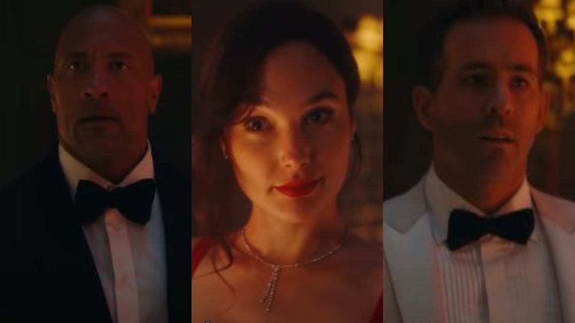 Red Notice Trailer Gal Gadot Takes Down Dwayne Johnson Ryan Reynolds